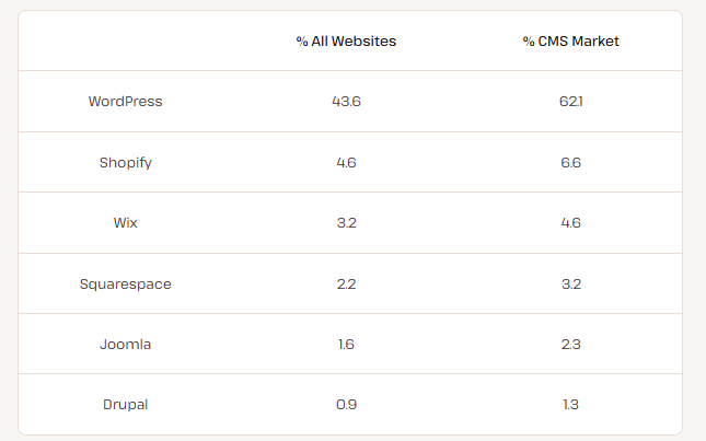 At its core, WordPress is the simplest, most popular way to create your own website or blog. In fact, as of 2025, WordPress powers over 43.6% of all the websites on the Internet or 62% of all custom-coded content management system (CMS) sites. Yes! more than one in four websites that you visit are likely powered by WordPress.